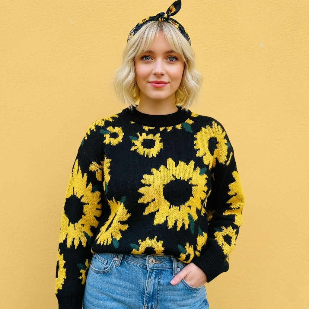 🌻 Kışın kasvetli grisine inat, Wenolas'ın Ayçiçeği Kazağı ile stilinize güneş doğsun. Siyahın derinliği üzerine kabartmalı ve canlı sarı dokuyla işlenmiş bu tasarım, soğuk günlerde üzerinizde taşıdığınız bir sanat eserine dönüşüyor.